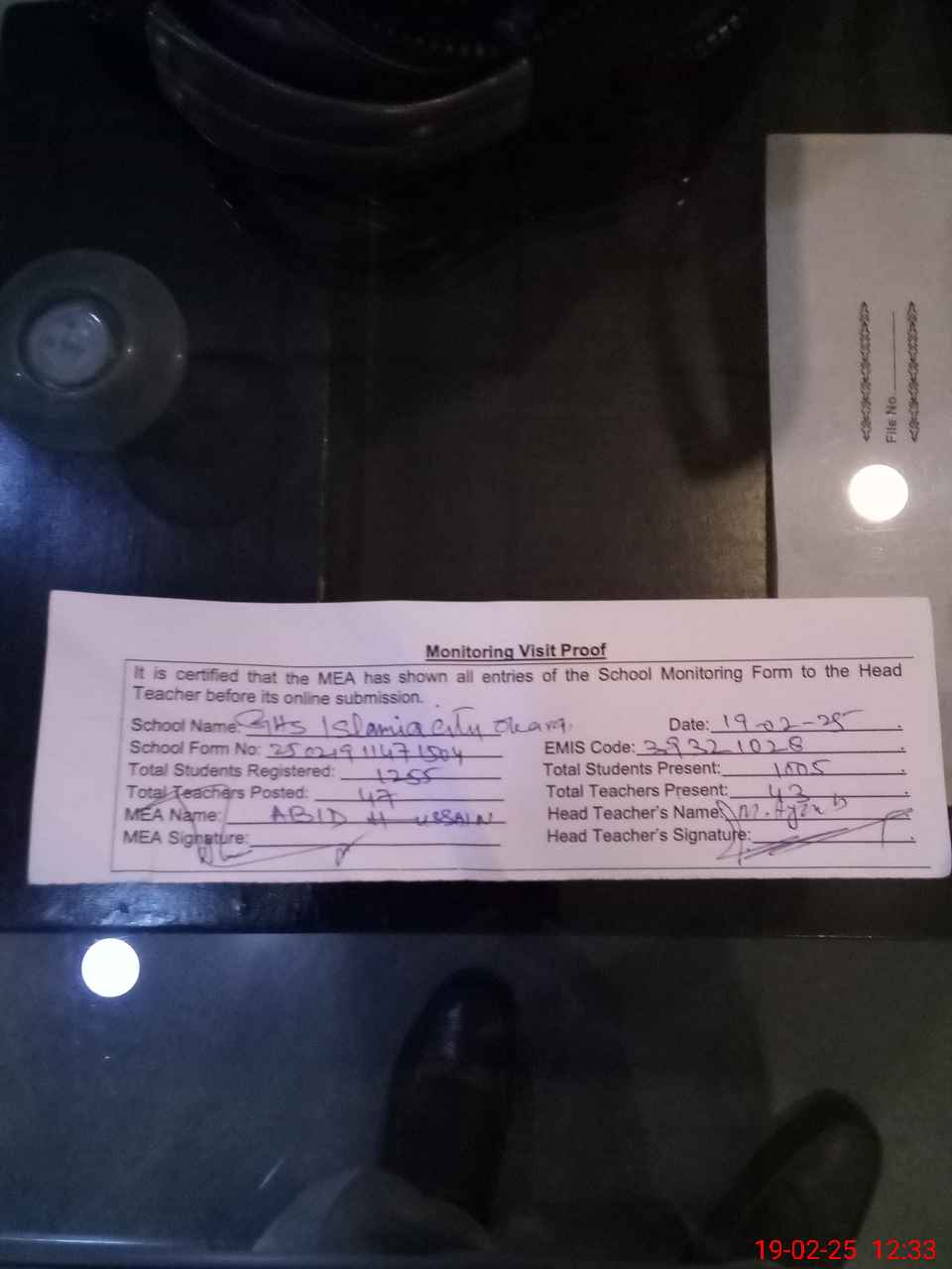 | Attendance Register | Head Teacher | MEA with School | Visit Proof |