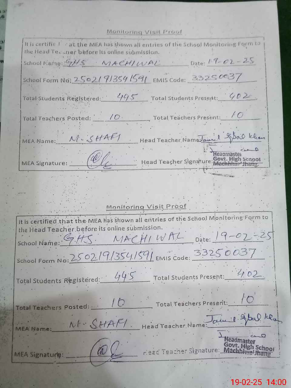 | EMIS Code: 33250037 | Name of School: GHS MACHI WAL | |||