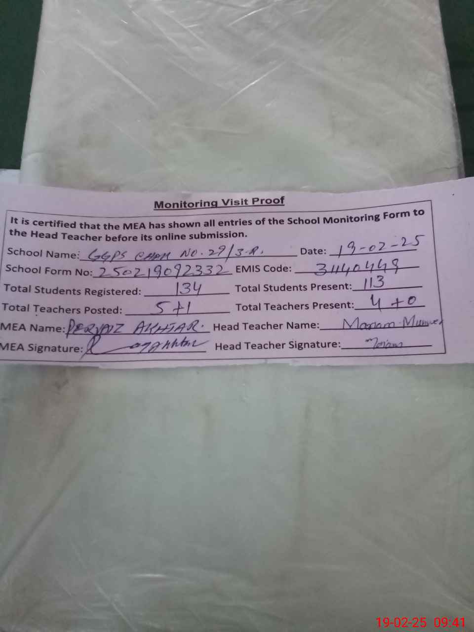 | EMIS Code: 31140449 | Name of School: GGPS CHAK 29/3-R (AB) | |||