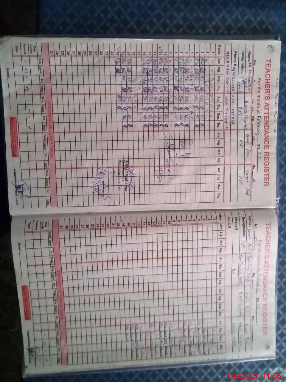 | CNIC | Full Name | Designation | R/C | Absence During Last Calender Month |