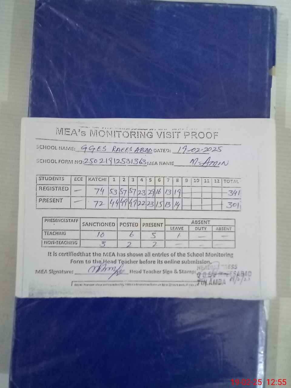 | EMIS Code: 36430112 | Name of School: GGES RAEES ABAD, TULAMBA | |||