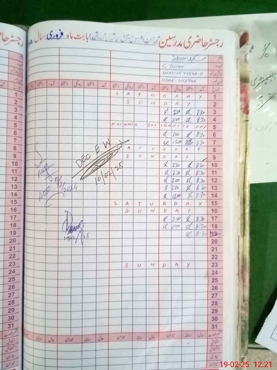 | Name: SY**** SH**** ME**** Designation: (School Headmaster's/Headmistress's) S.S.T (GENERAL) Phone/Cell Number: 03**** |