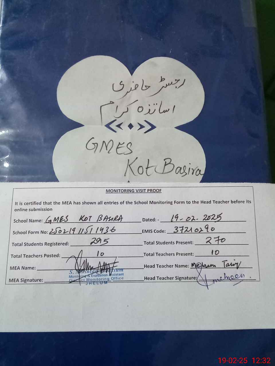| EMIS Code: 37210290 | Name of School: GMES KOT BASIRA | |||
