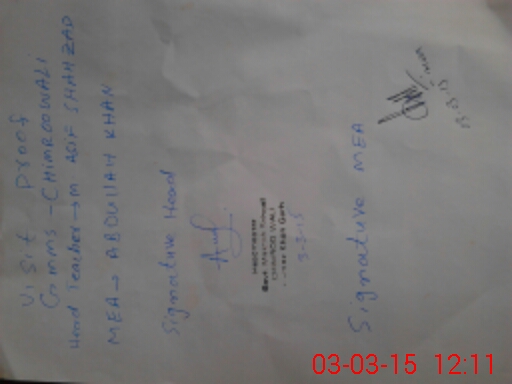 | Name: M.**** SH**** Designation: (School Headmaster's/Headmistress's) ESE Phone/Cell Number: 03**** |