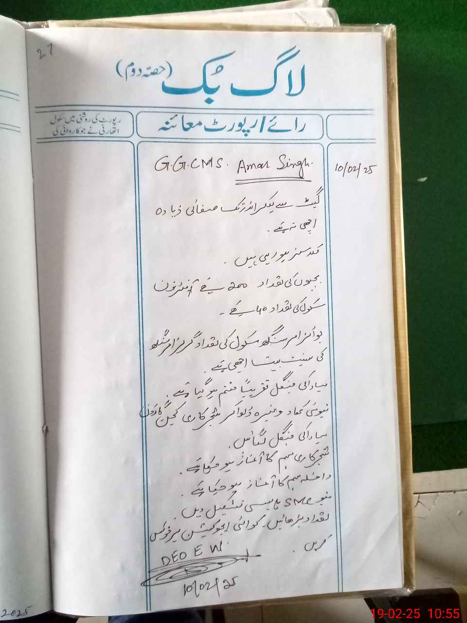 | Remarks (Use Separate Page if Required): PST Naseem Akhtar absent from school since 13 Jan 2025 Books record D 4 not showing NSB record balance far the month of Dec January write with led pencil FTF record write with led pencil Boundary Wall nonfunctional gab 35 feet | |||||