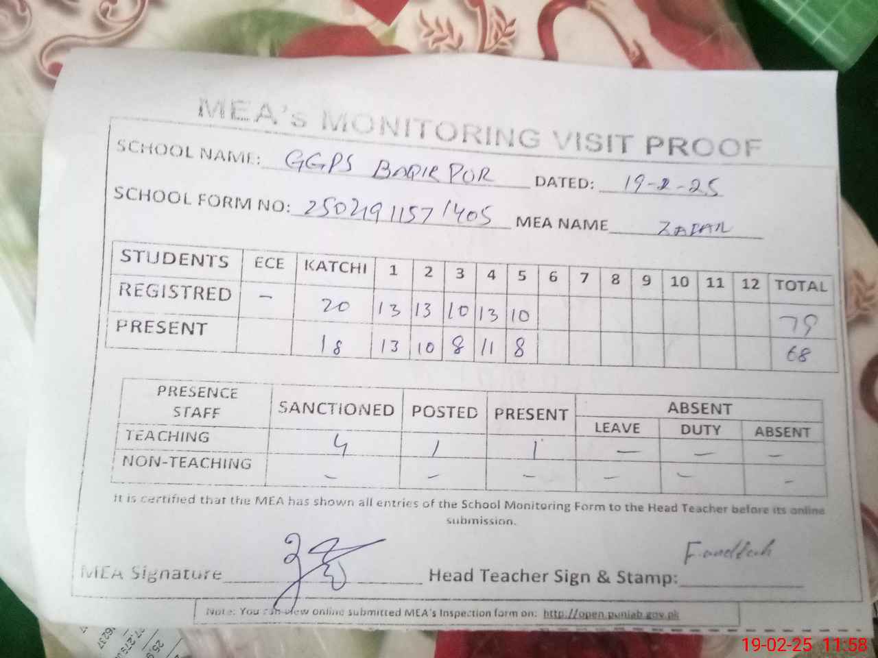 | EMIS Code: 36410437 | Name of School: GGPS BAQIR PUR NO.2 SARAI SIDHU | |||