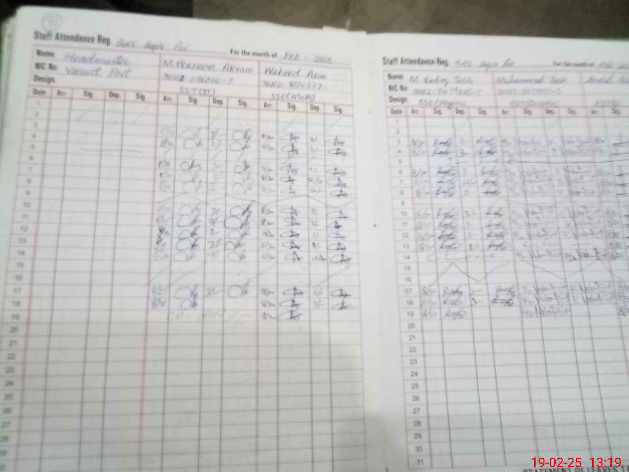 | CNIC | Full Name | Designation | R/C | Absence during last cal. month |
