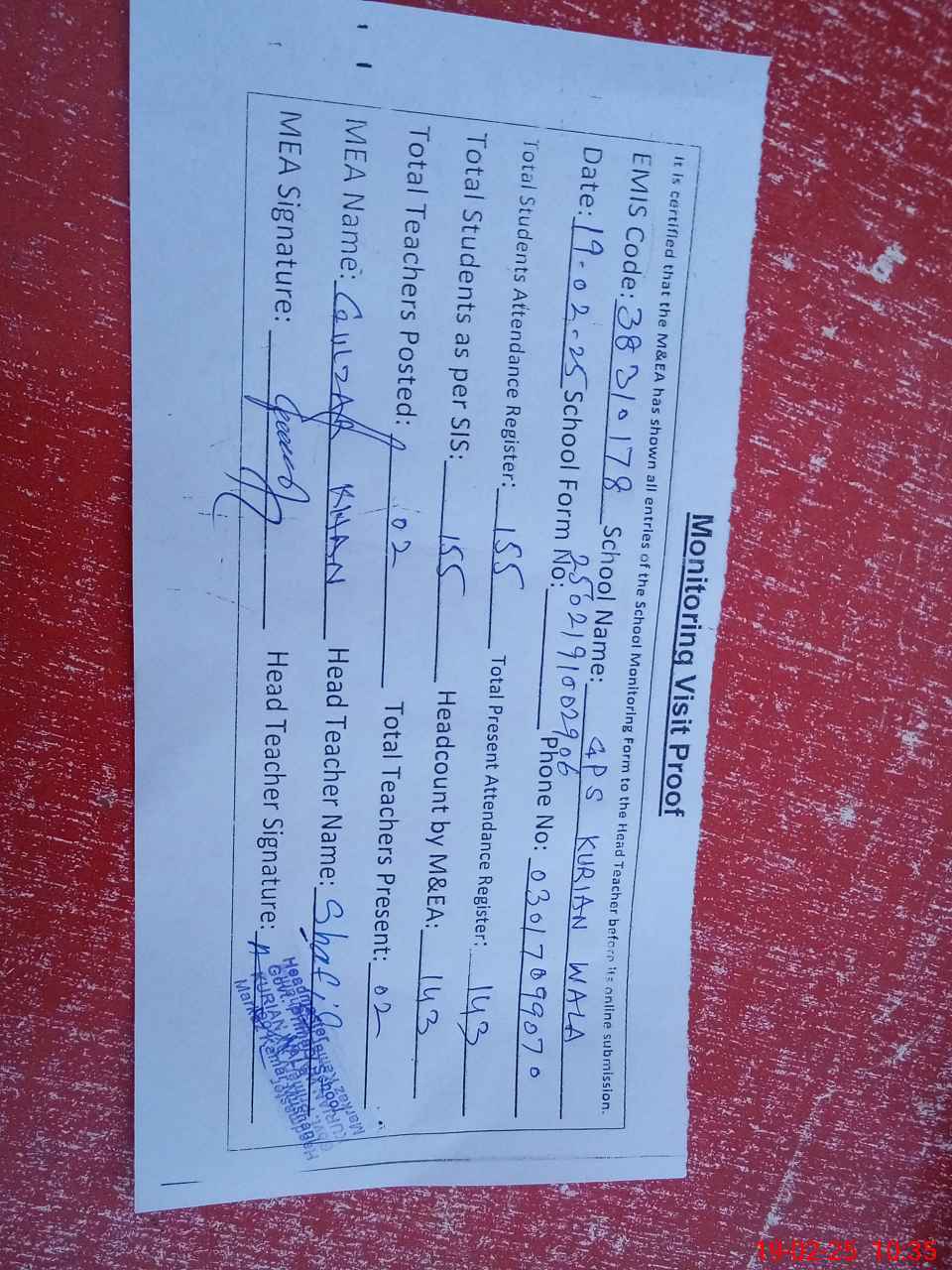 | EMIS Code: 38310178 | Name of School: GPS KURIAN WALA WANDHA KURIAN WALA | |||