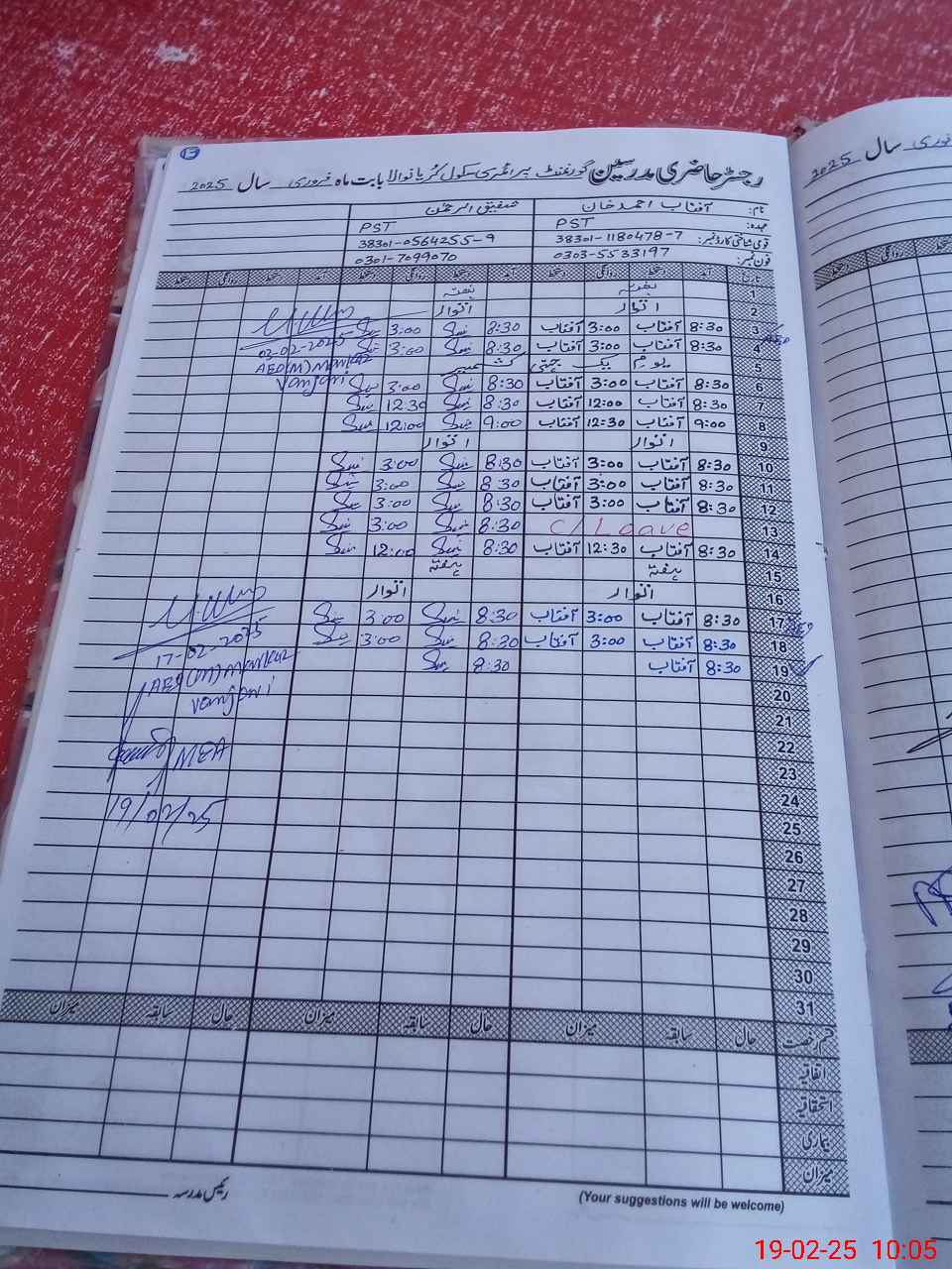 | Name: AF**** AH**** KH**** Designation: (School Headmaster's/Headmistress's) PST Phone/Cell Number: 03**** |