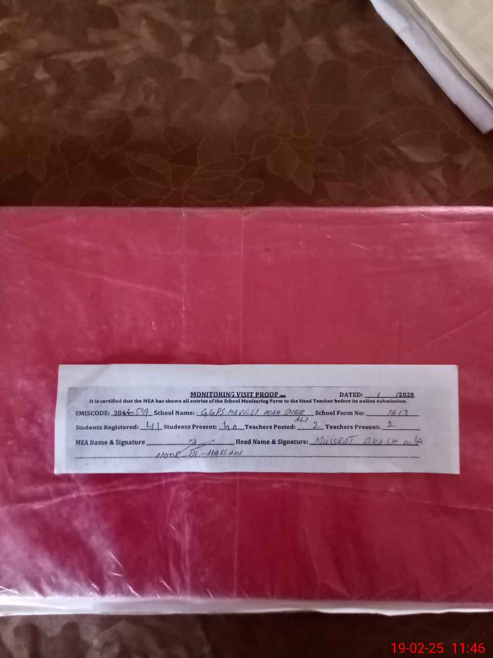 | EMIS Code: 38460539 | Name of School: GGPS HAVELI MIAN SHER ALI | |||