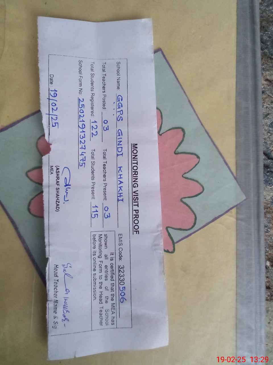 | EMIS Code: 32330506 | Name of School: GGPS GINDI KHAKHI | |||