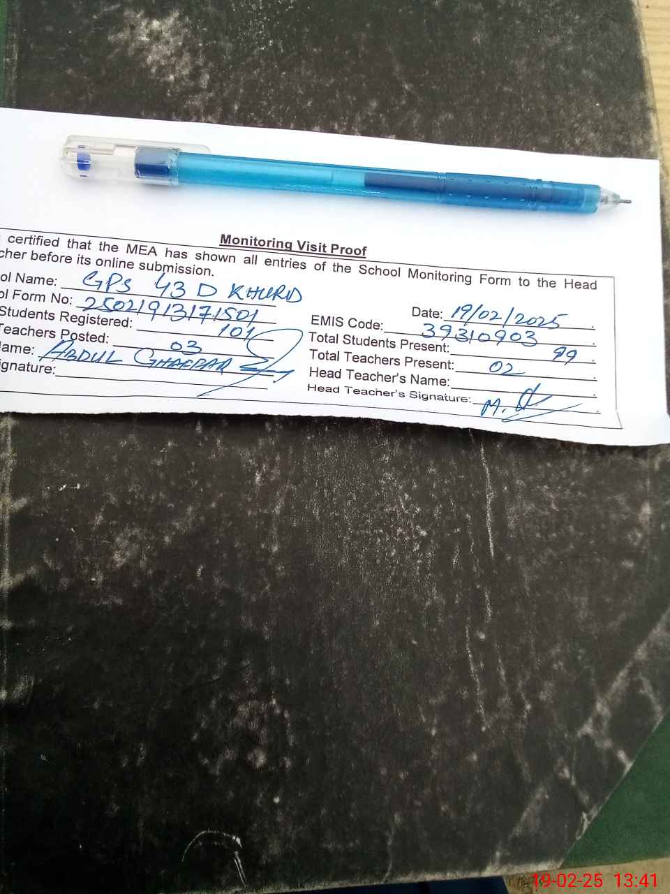 | EMIS Code: 39310903 | Name of School: GPS CHAK 43 D KHURD | |||