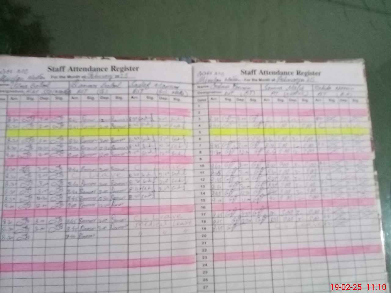 | CNIC | Full Name | Designation | R/C | Absence During Last Calender Month |