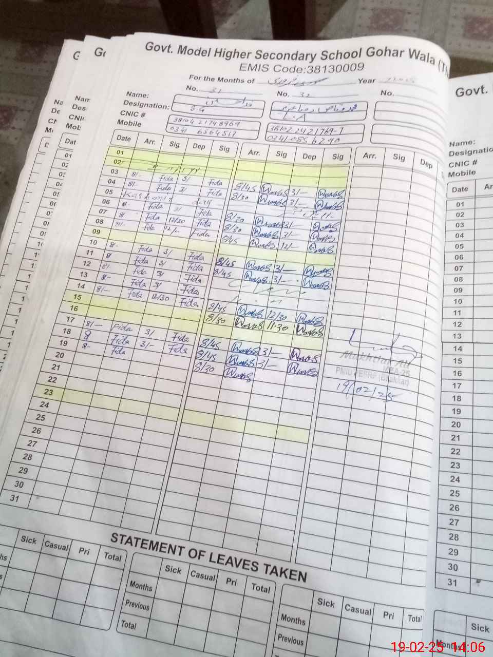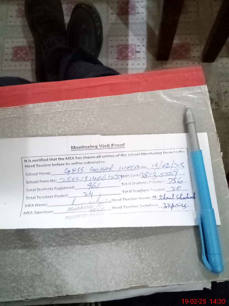 | EMIS Code: 38130009 | Name of School: GHSS GOHAR WALA | |||