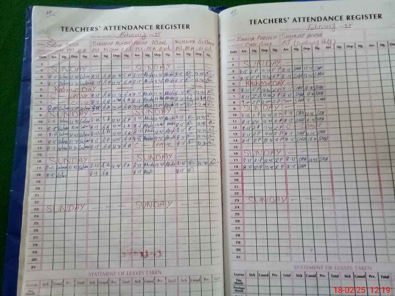 | Total no. of Classrooms: 9 No. of Classrooms Used for Teaching: 6 No. of Classrooms Storing Old Furniture, FTBs, etc: 0Comments if Any: NSB record register not available in school |