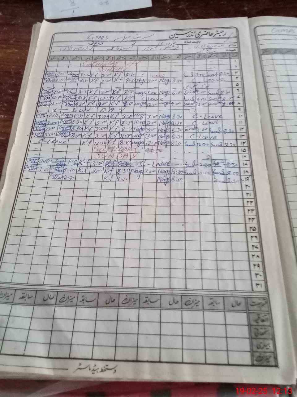 | CNIC | Full Name | Designation | R/C | Absence During Last Calender Month |