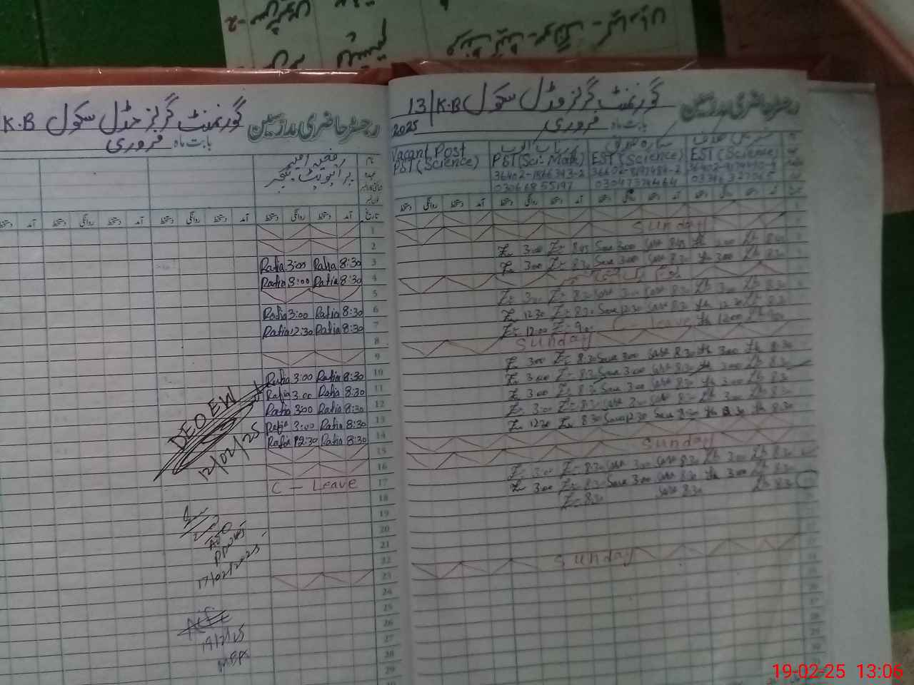 | Name: Na**** Pa**** Designation: (School Headmaster's/Headmistress's) PST Phone/Cell Number: 03**** |