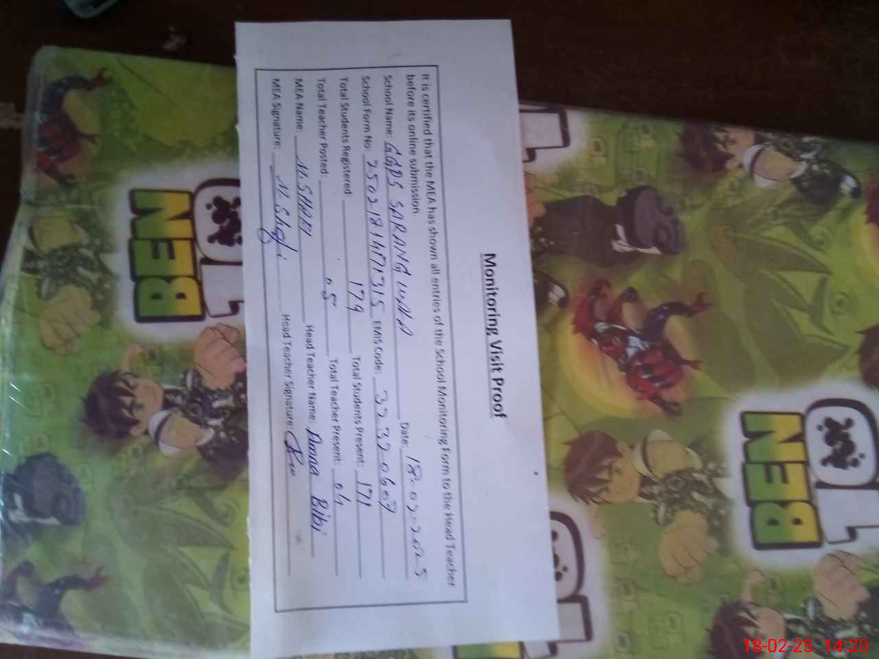 | EMIS Code: 32320607 | Name of School: GGPS SARANG WALA | |||