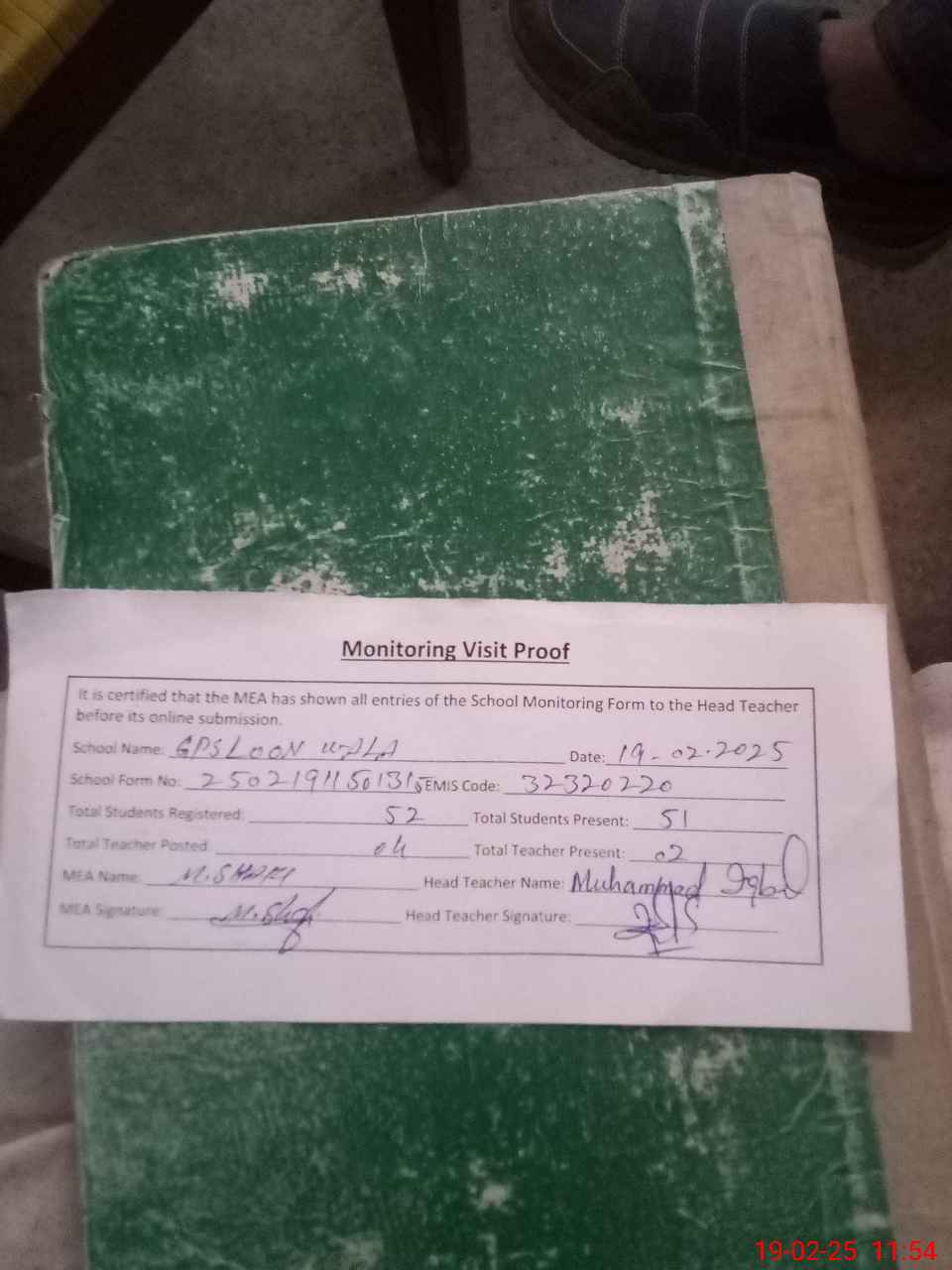 | EMIS Code: 32320220 | Name of School: GPS LOON WALA | |||