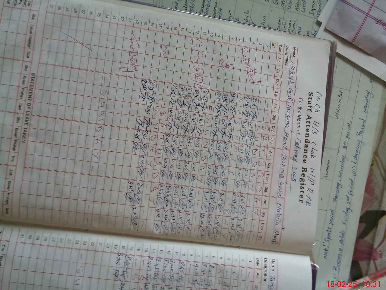 | CNIC | Full Name | Designation | R/C | Absence During Last Calender Month |