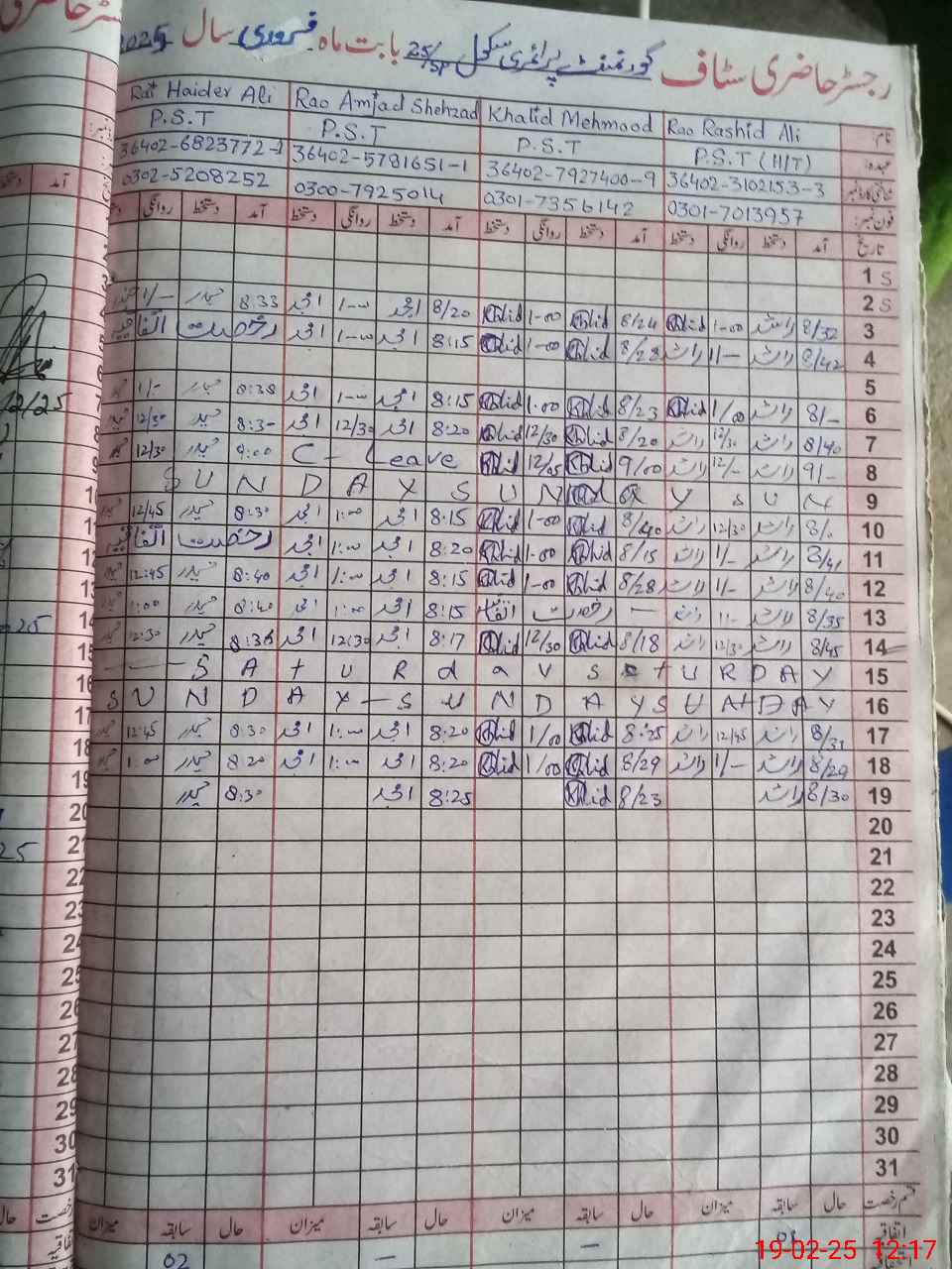 | Name: RA**** AL**** Designation: (School Headmaster's/Headmistress's) PST Phone/Cell Number: 03**** |