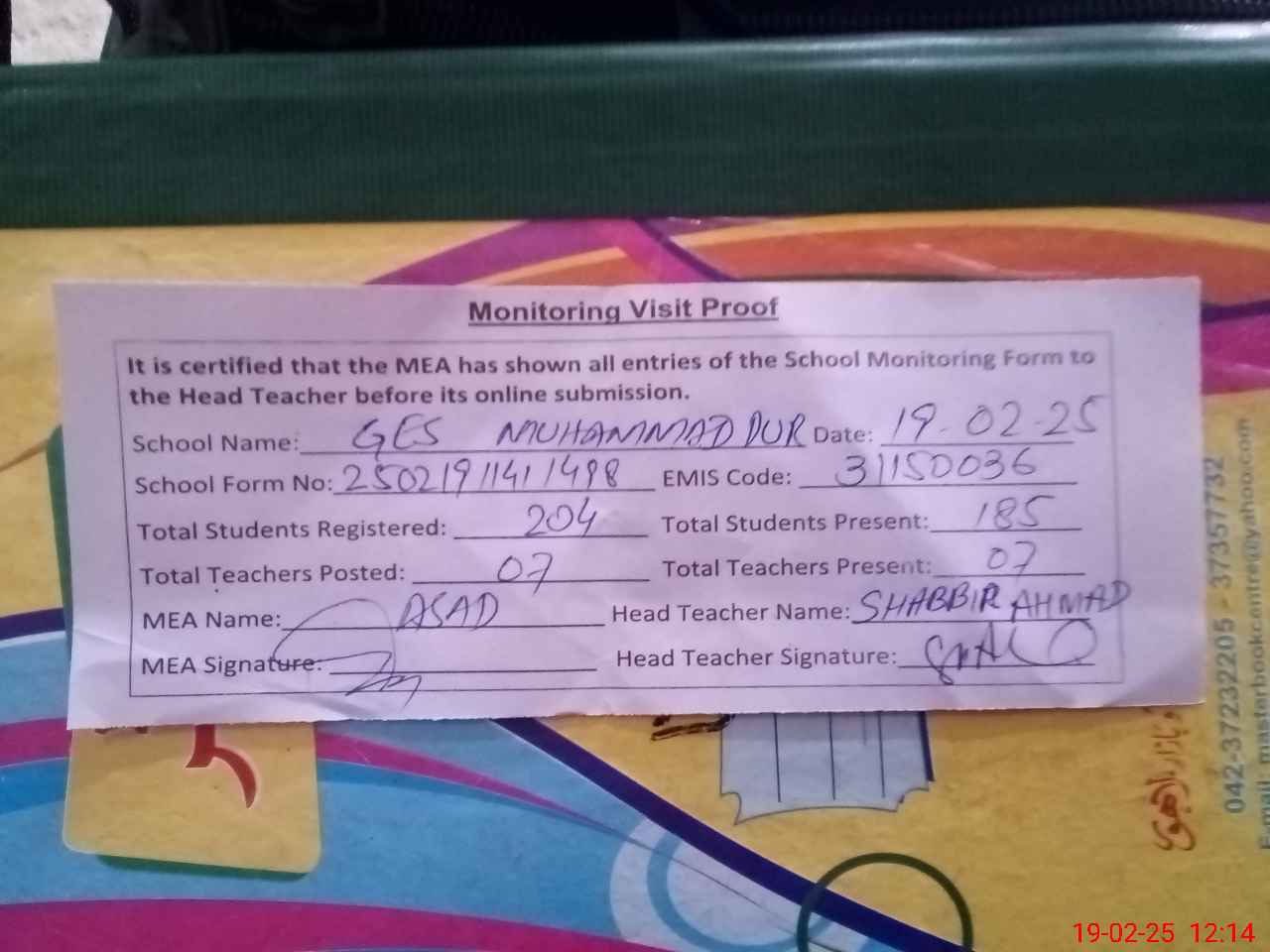 | EMIS Code: 31150036 | Name of School: GES MUHAMMAD PUR SANSARAN | |||