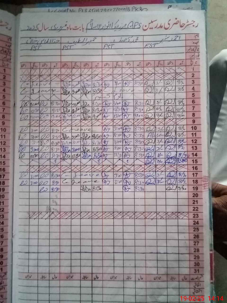 | CNIC | Full Name | Designation | R/C | Absence During Last Calender Month |