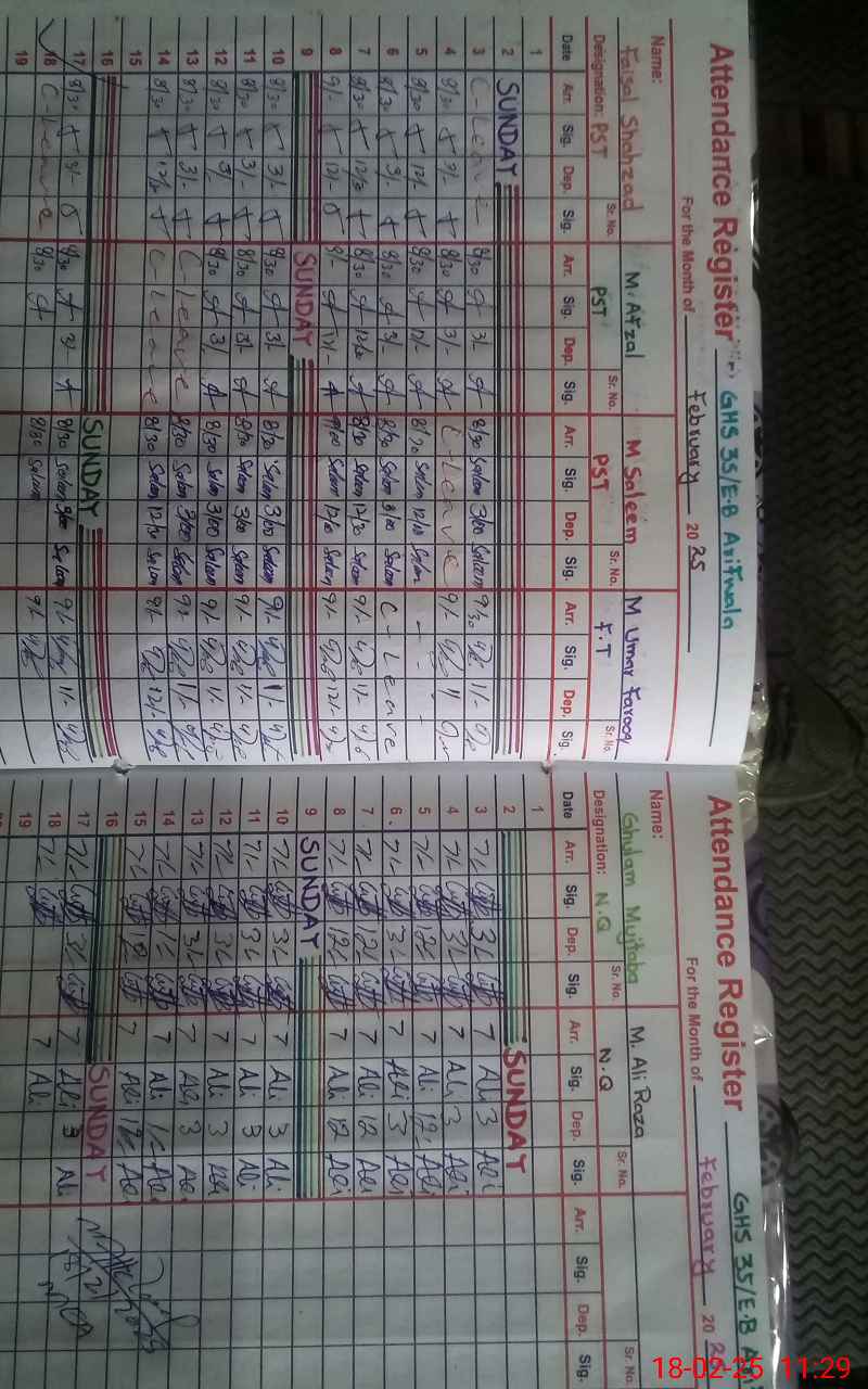 | CNIC | Full Name | Designation | R/C | Absence During Last Calender Month |