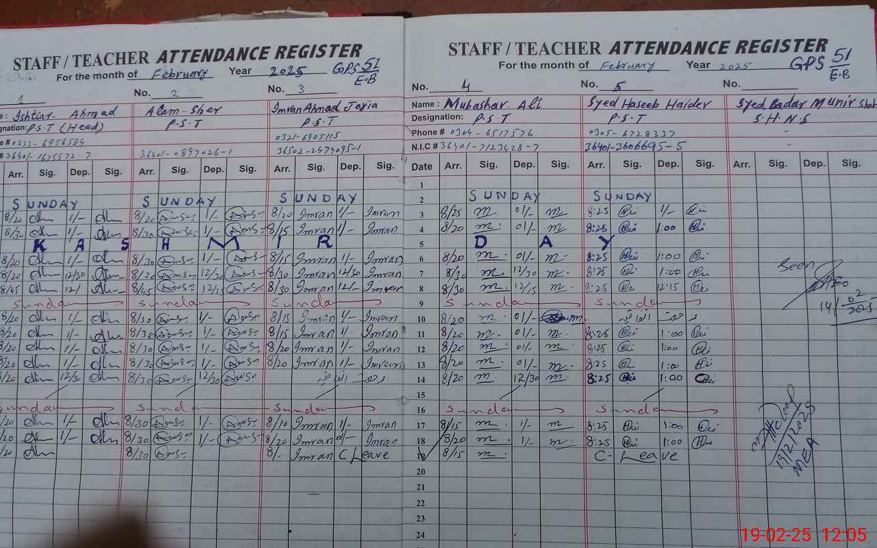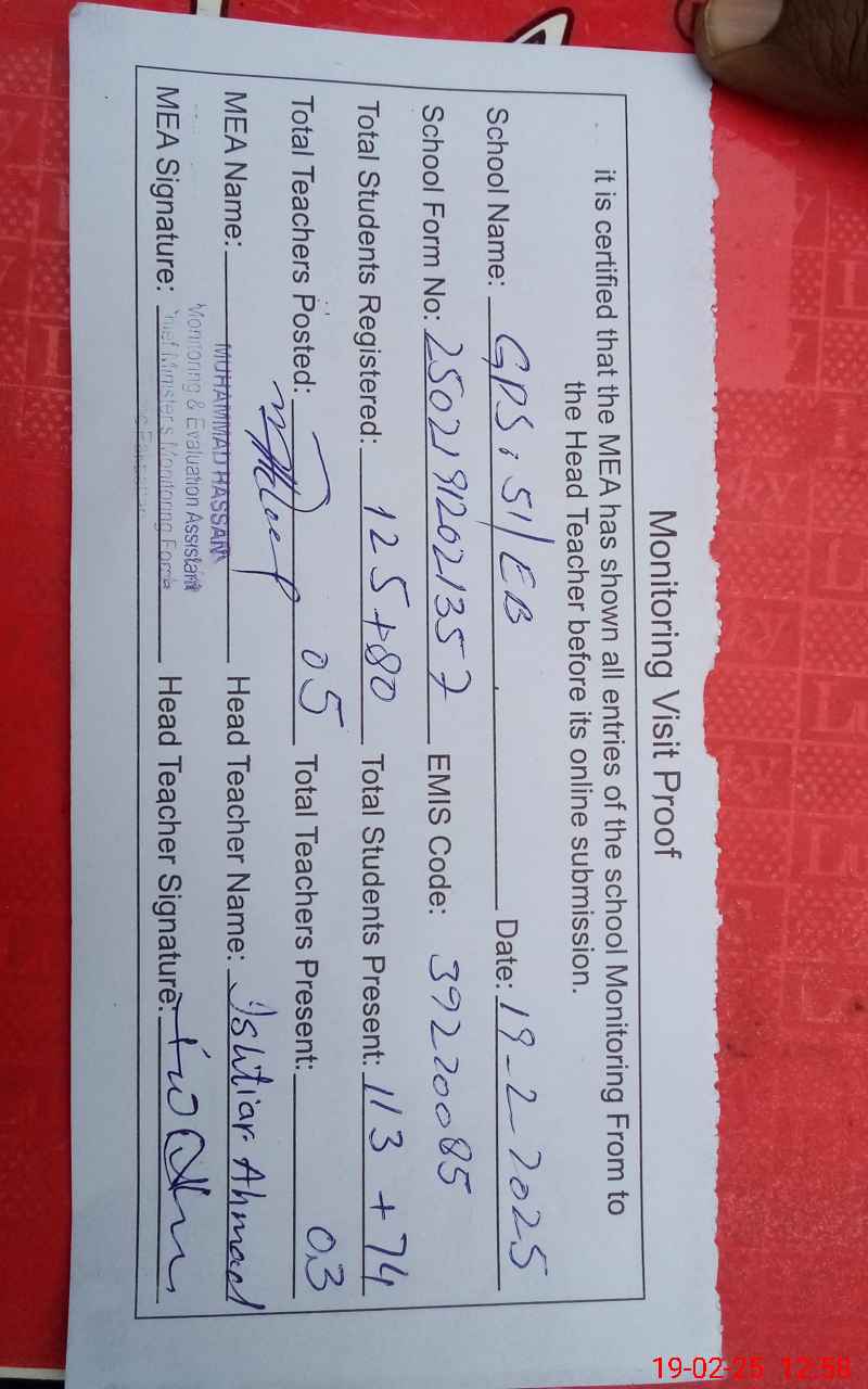 | Name: IS**** AH**** Designation: (School Headmaster's/Headmistress's) PST Phone/Cell Number: 03**** |