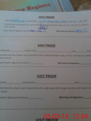 | Attendance Register | Head Teacher | MEA with School | Visit Proof |