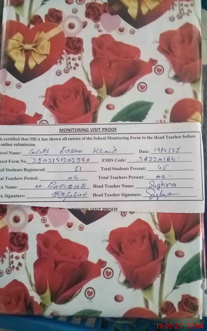 | EMIS Code: 38220184 | Name of School: GGPS EASAN KHAIL | |||