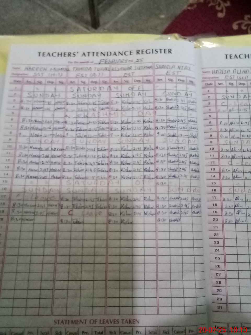| CNIC | Full Name | Designation | R/C | Absence During Last Calender Month |