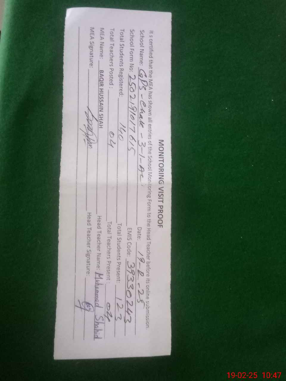 | EMIS Code: 39330243 | Name of School: GPS CHAK 3/1-AL | |||