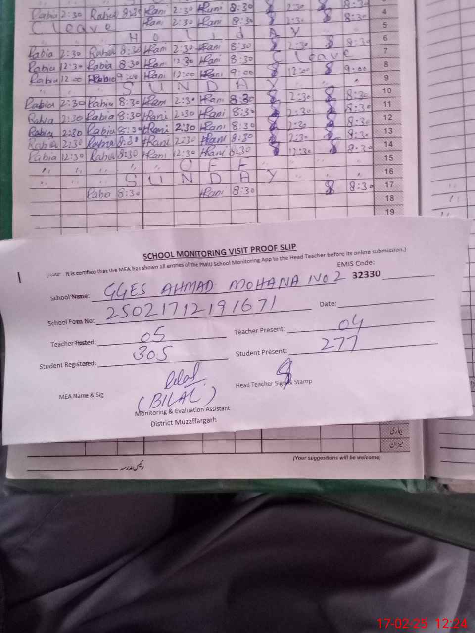 | EMIS Code: 32330572 | Name of School: GGES AHMAD MOHANA NO.2 | |||