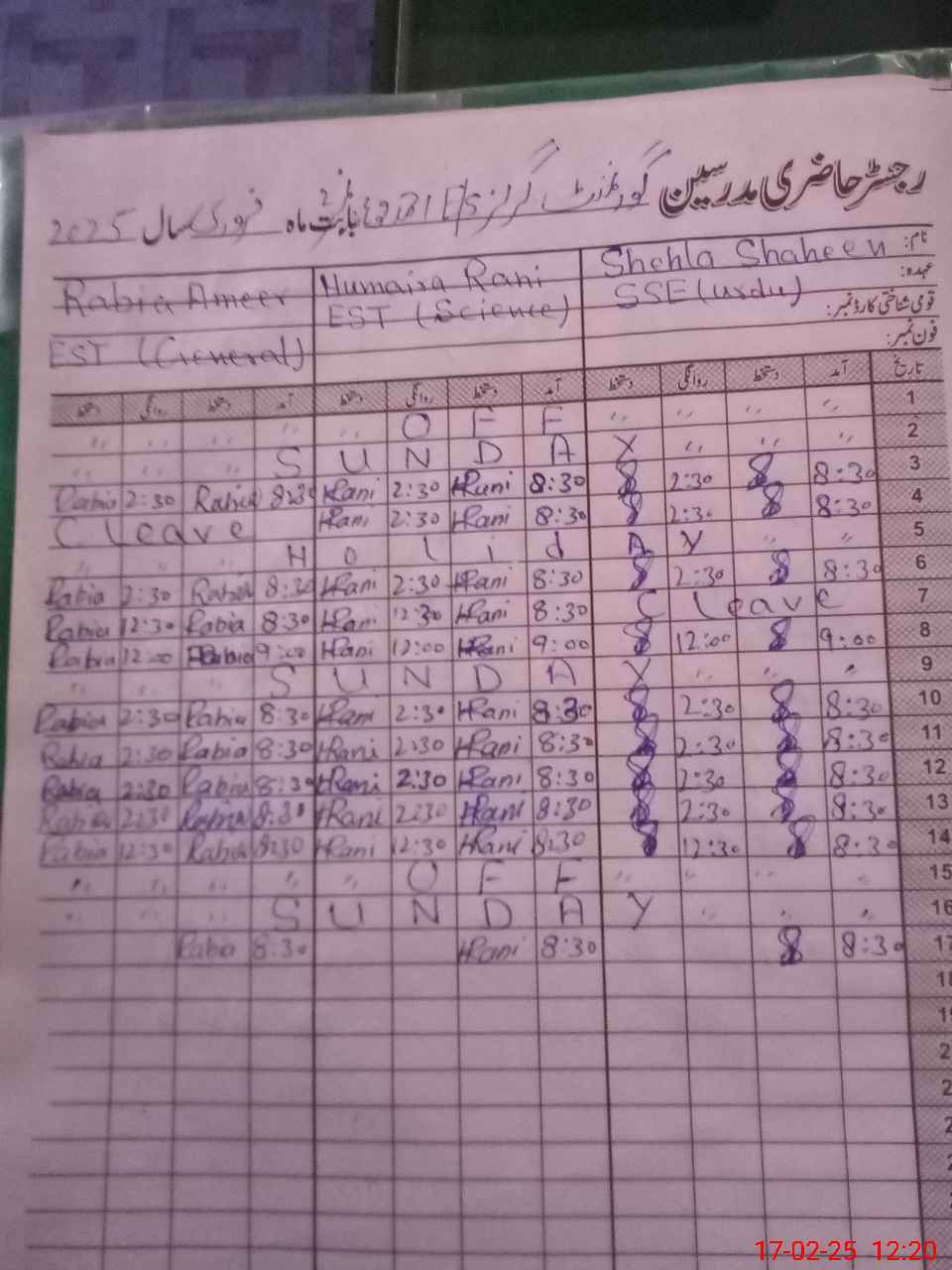 | Name: Sh**** Sh**** Designation: (School Headmaster's/Headmistress's) SSE Urdu Phone/Cell Number: 03**** |