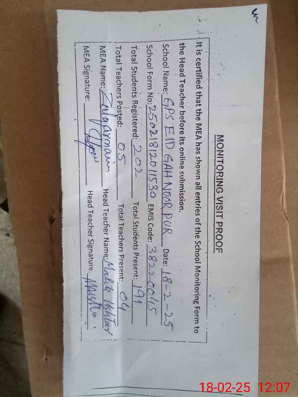 | EMIS Code: 38220045 | Name of School: GPS EID GAH NOOR PUR | |||