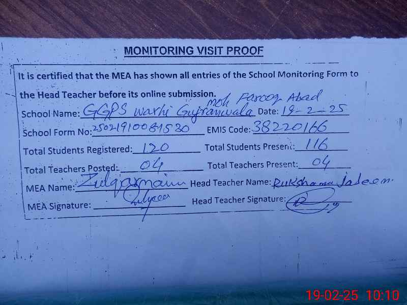 | EMIS Code: 38220166 | Name of School: GGPS WARHI GUJRAN WALA MOHALLA FAROOQ ABAD | |||