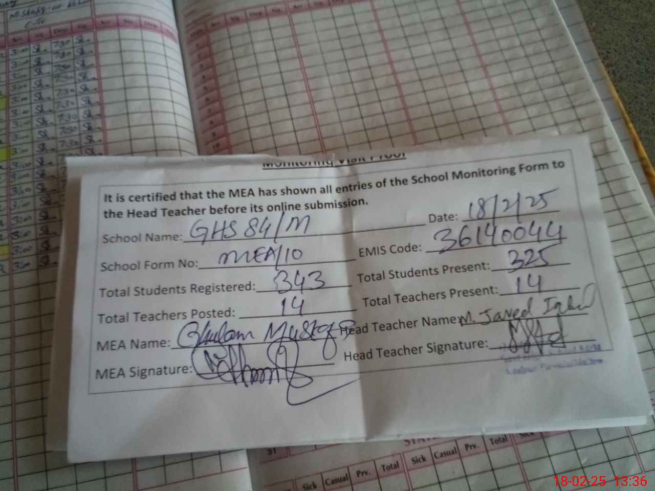| EMIS Code: 36140044 | Name of School: GHS CHAK 84 / M | |||