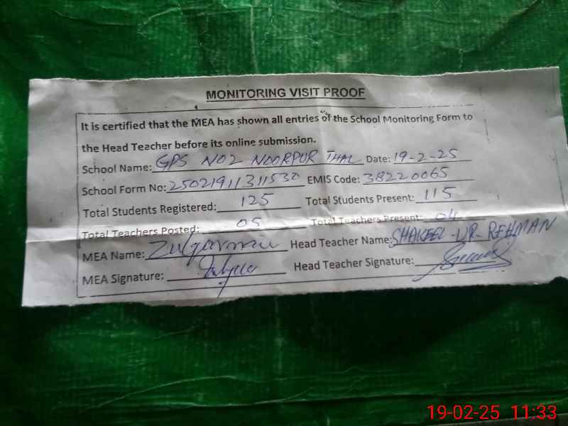 | EMIS Code: 38220065 | Name of School: GPS NO. 2 NOOR PUR THAL | |||