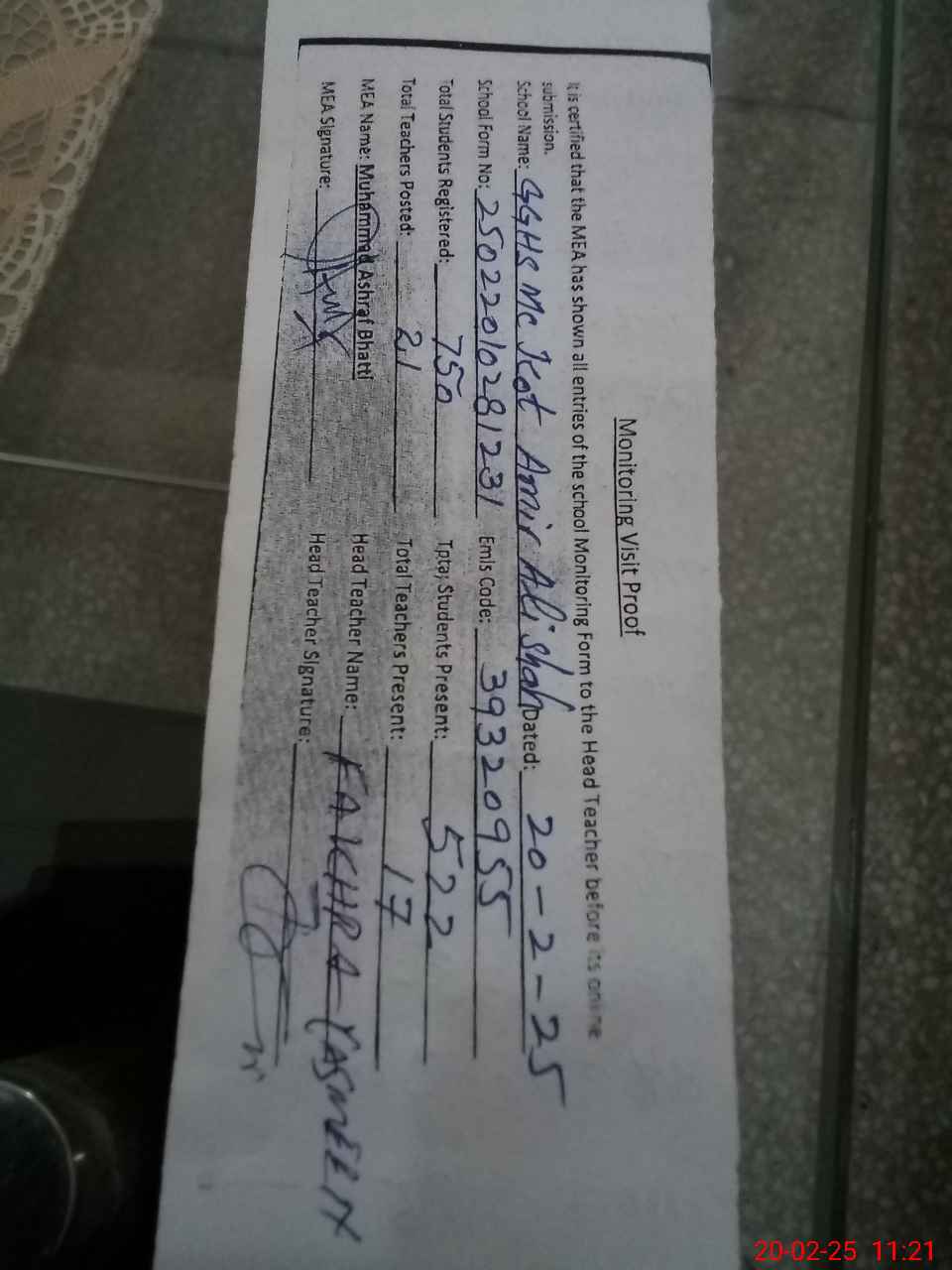 | EMIS Code: 39320955 | Name of School: GGHS MC JUNIOR MODEL KOT AMIR ALI SHAH OKARA | |||