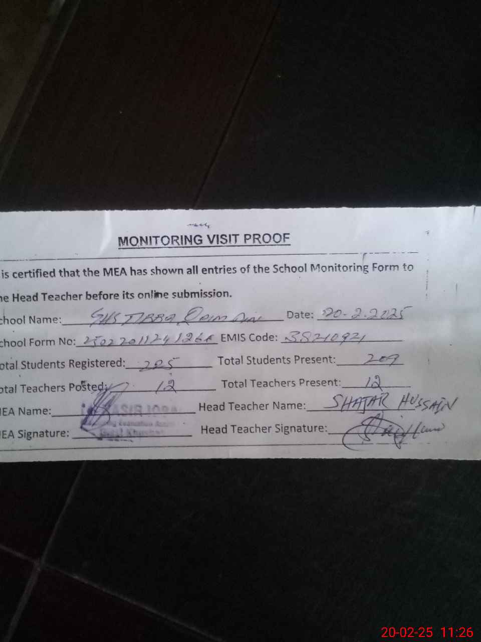 | EMIS Code: 38210921 | Name of School: GHS TIBBA QAIM DIN | |||