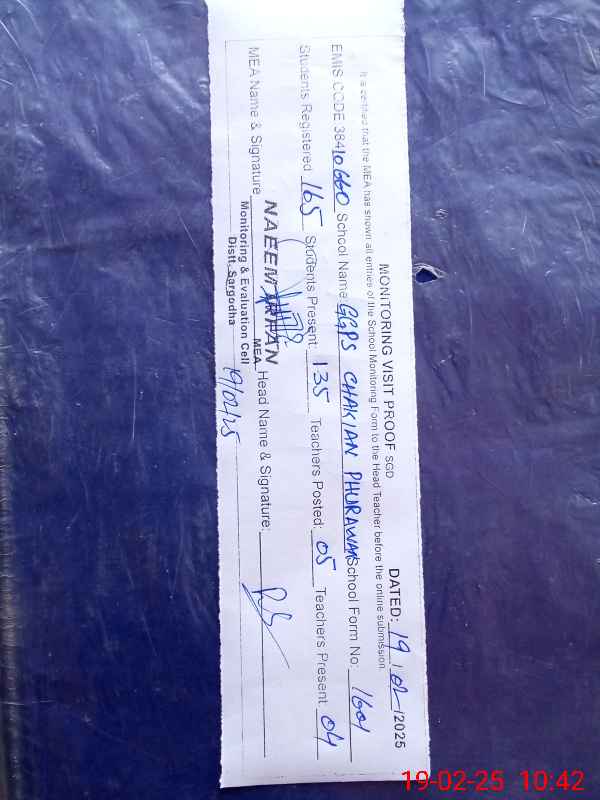| EMIS Code: 38410660 | Name of School: GGPS CHAKIAN PHULARWAN | |||
