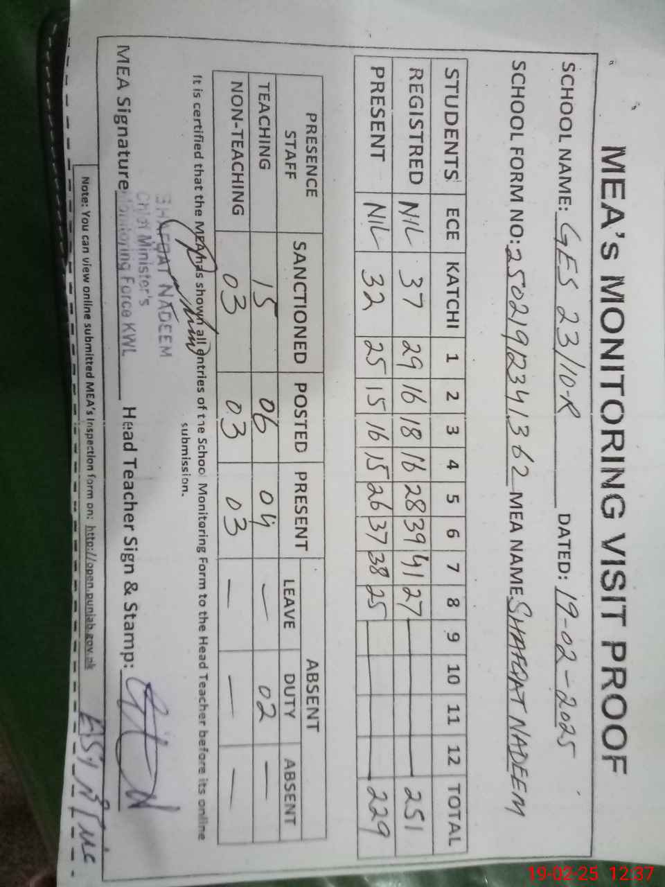 | EMIS Code: 36420076 | Name of School: GES 23/10-R, KACHA KHUH | |||