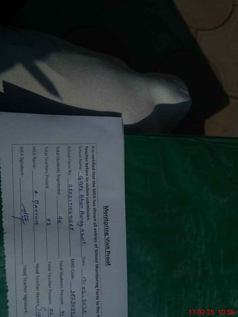 | EMIS Code: 38230553 | Name of School: GGPS BHAN BARRY KHAIL | |||