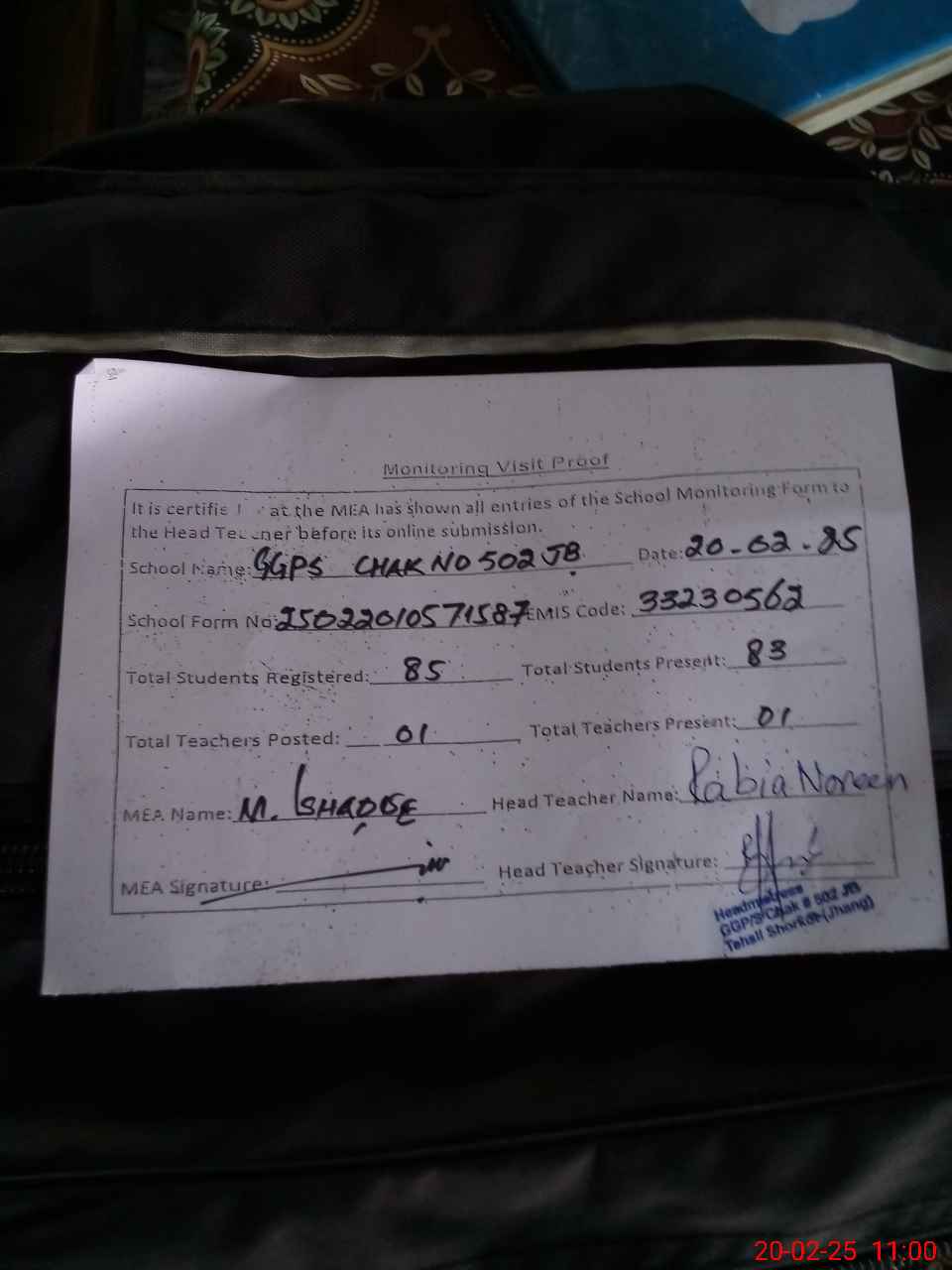 | EMIS Code: 33230562 | Name of School: GGPS CHAK NO 502 JB MALKA | |||