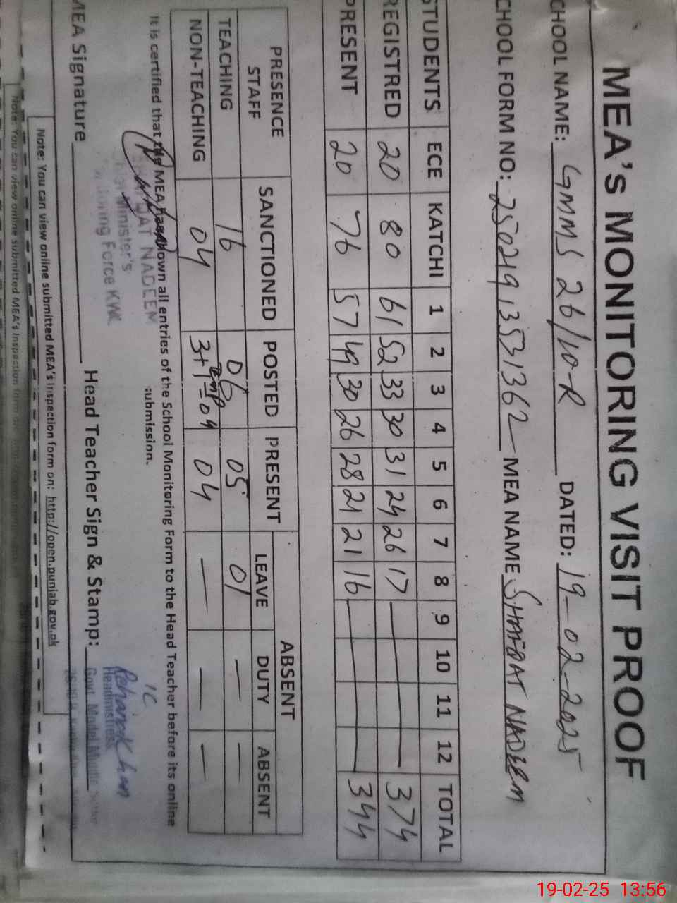 | EMIS Code: 36420121 | Name of School: GMMS 26/10-R, KACHA KHUH | |||