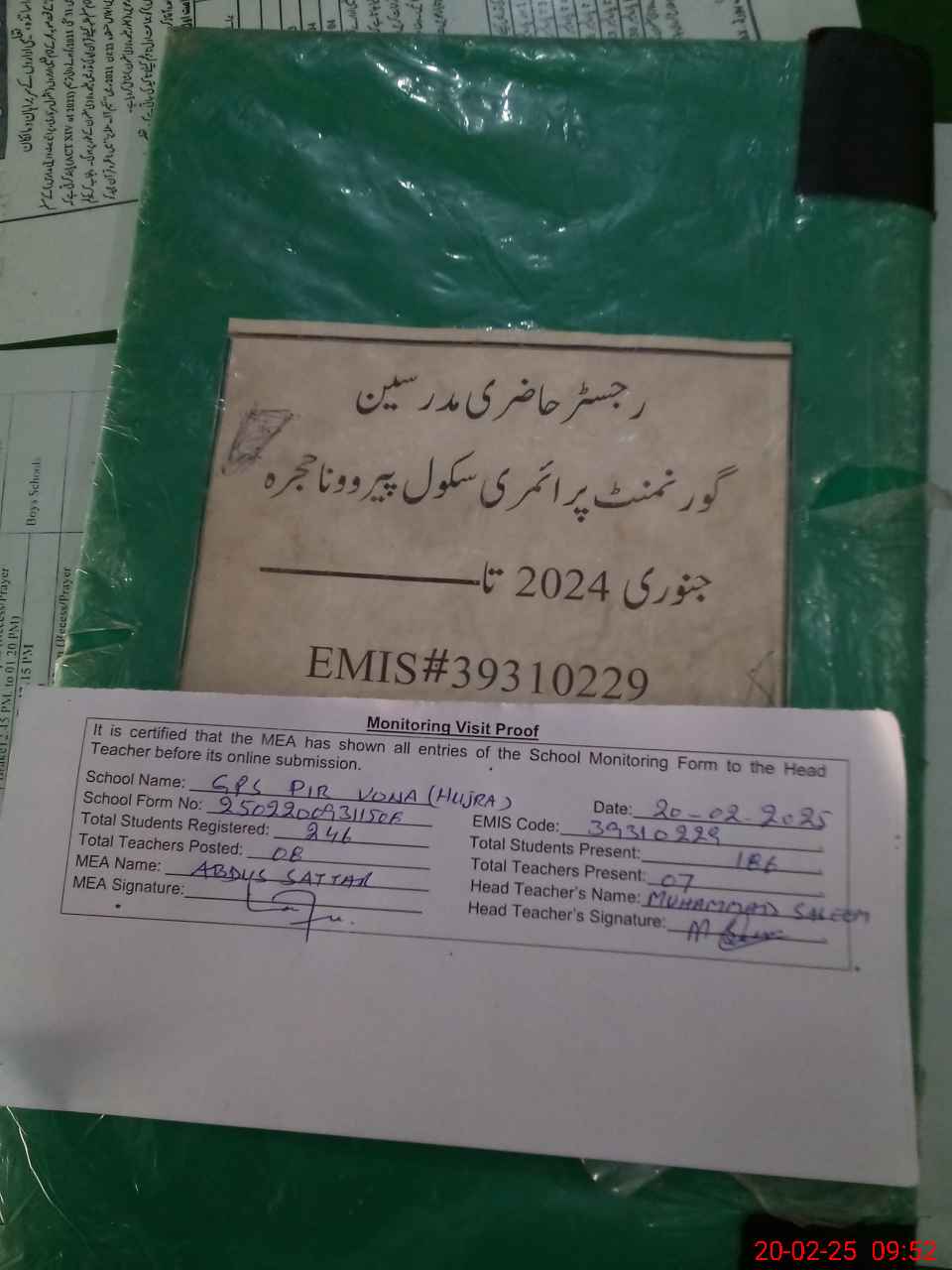 | EMIS Code: 39310229 | Name of School: GPS PIR VONA | |||
