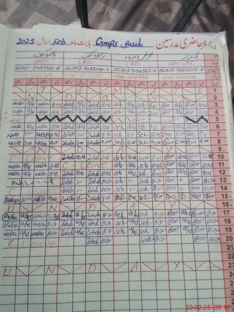 | 35**** | Na**** Ma**** | PST | Regular | 0 | 0 | 0 | 0 | 0 | 0 | 0 | 0 | 0 | Casual |