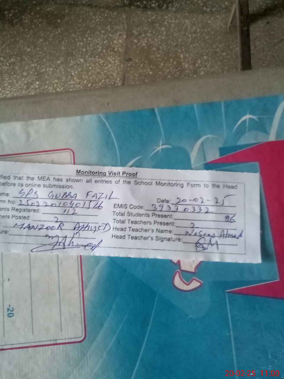 | EMIS Code: 39330332 | Name of School: GPS GUBBA FAZIL | |||