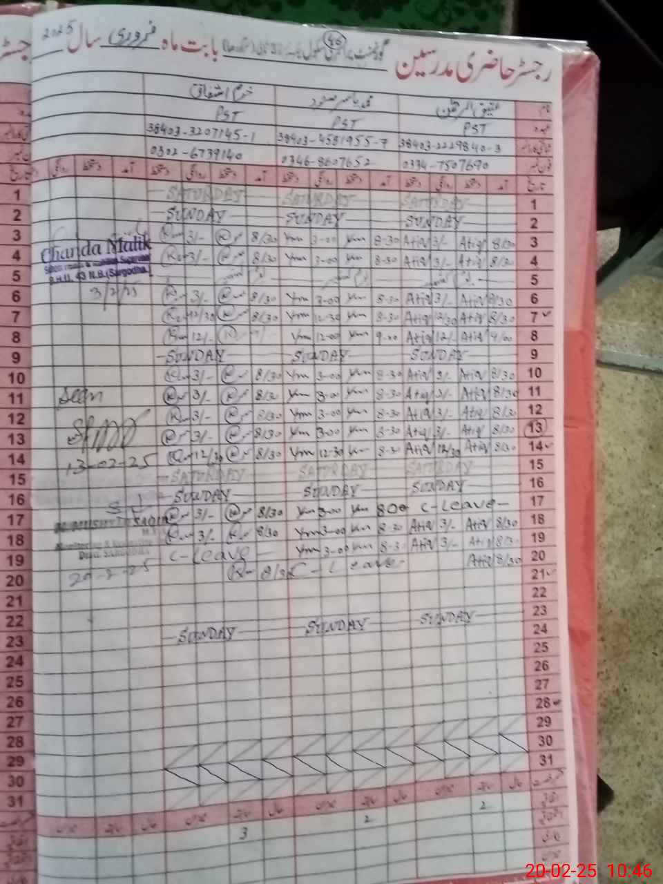 | Name: AT**** URRE**** Designation: (School Headmaster's/Headmistress's) PST Phone/Cell Number: 03**** 75**** |